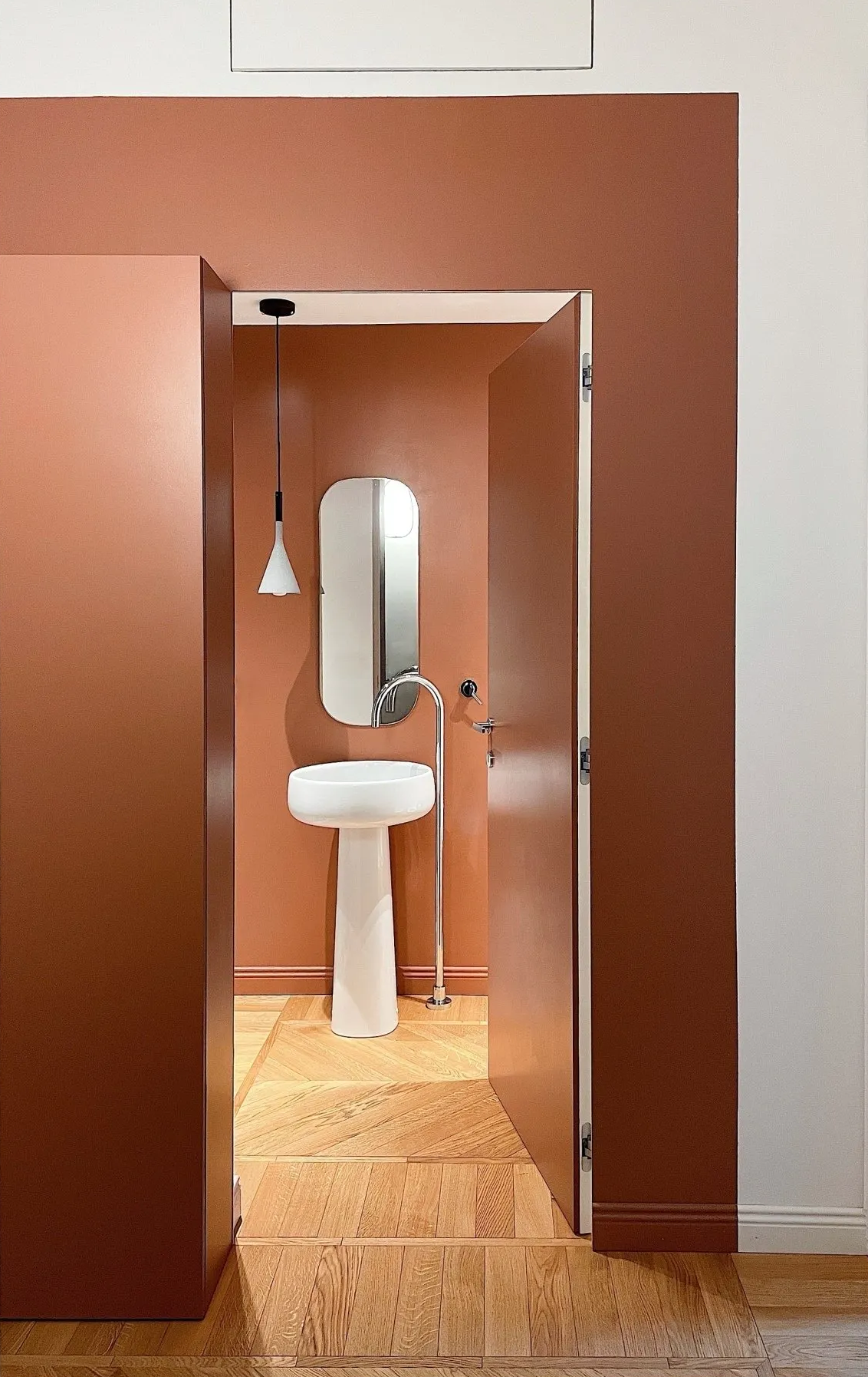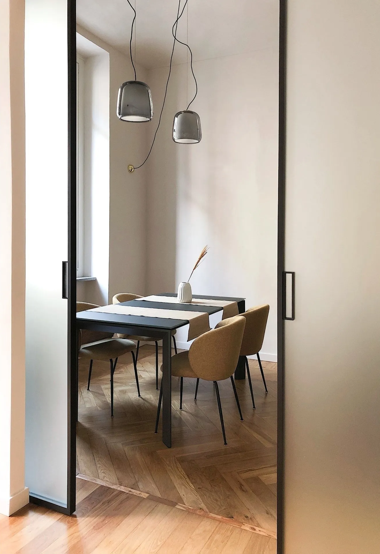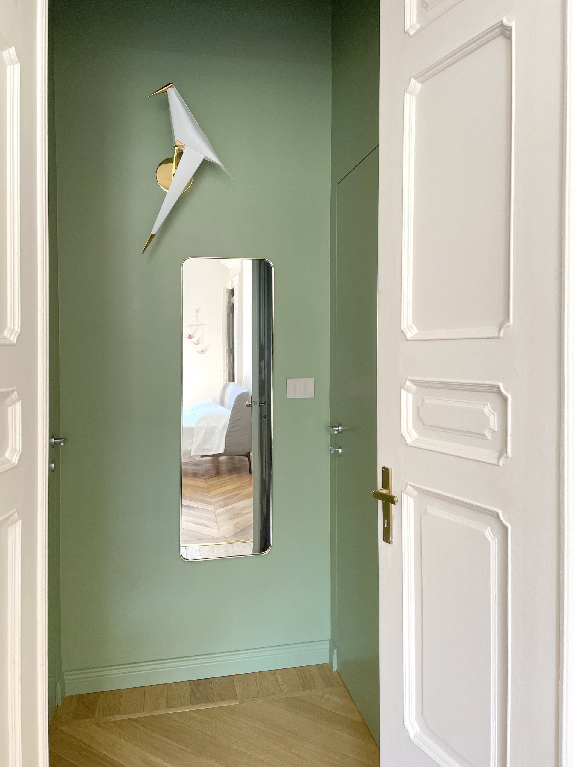 Per il suo spazio abitato, Silvia desiderava tanto colore, ma che fosse in linea con il suo carattere gentile e pacato. Ha sempre vissuto spazi in affitto che sentiva poco suoi, lontani dal suo modo di essere e voleva che la sua casa invece raccontasse di sé, che la facesse sentire a casa in una città lontana da casa. Decori eleganti e alti soffitti fanno da sfondo ad un ambiente dai colori caldi e accoglienti.