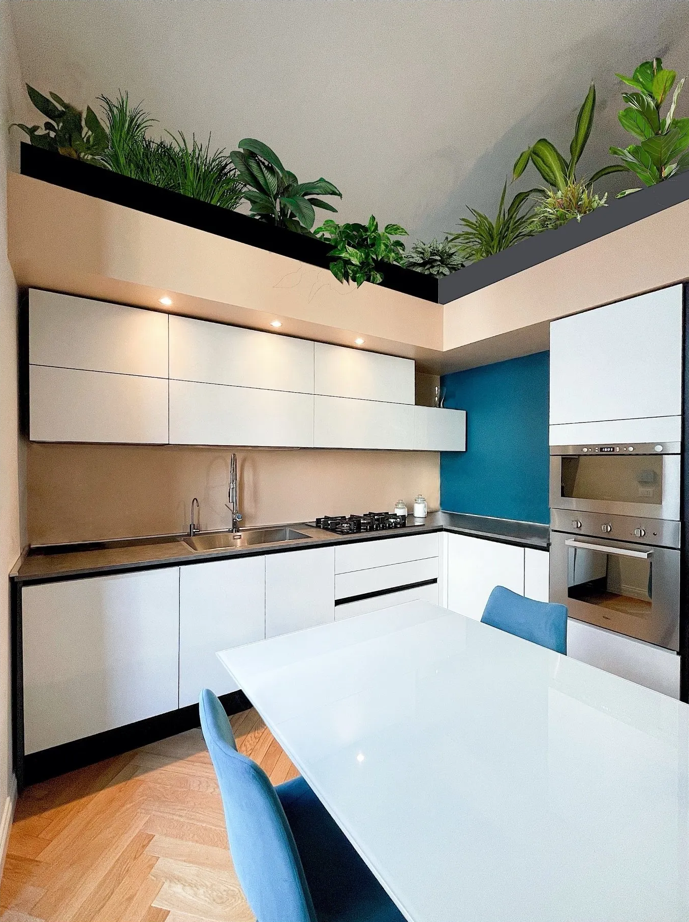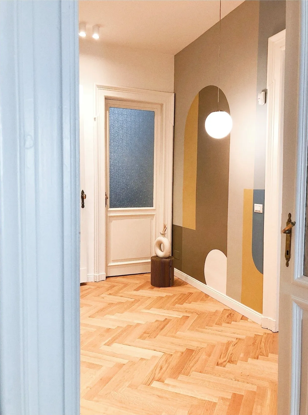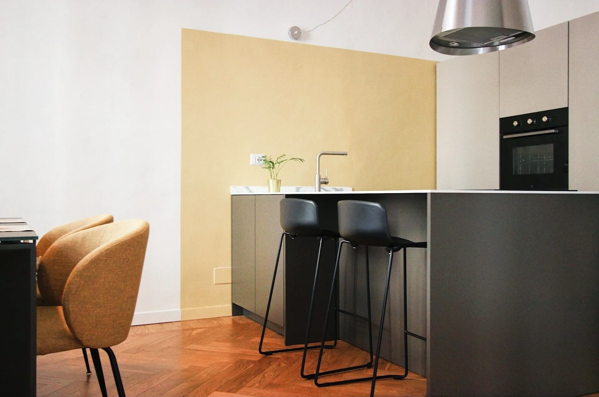 Per il suo spazio abitato, Silvia desiderava tanto colore, ma che fosse in linea con il suo carattere gentile e pacato. Ha sempre vissuto spazi in affitto che sentiva poco suoi, lontani dal suo modo di essere e voleva che la sua casa invece raccontasse di sé, che la facesse sentire a casa in una città lontana da casa. Decori eleganti e alti soffitti fanno da sfondo ad un ambiente dai colori caldi e accoglienti.