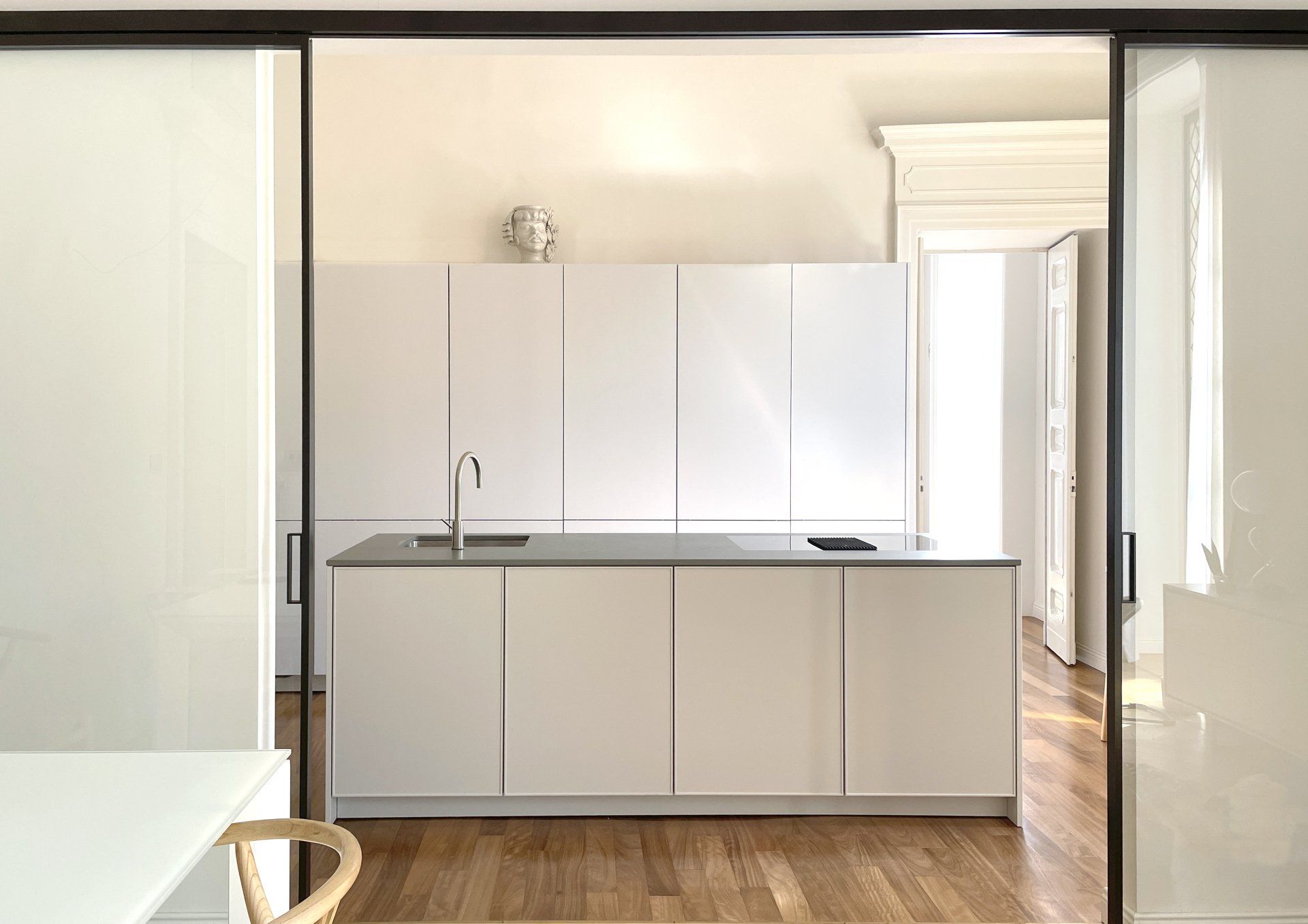 Uno spazio abitato informale ma allo stesso tempo elegante. Un appartamento ottocentesco nel centro di Torino di cui l'aspetto austero e la struttura rigida vengono stemperati attraverso l'uso del colore, informalità, leggerezza. Ripristinata l'originaria distribuzione con corridoio e stanze passanti, tutti gli ambienti della casa si affacciano su un'ampia aria living il cui fulcro è la cucina ad isola.